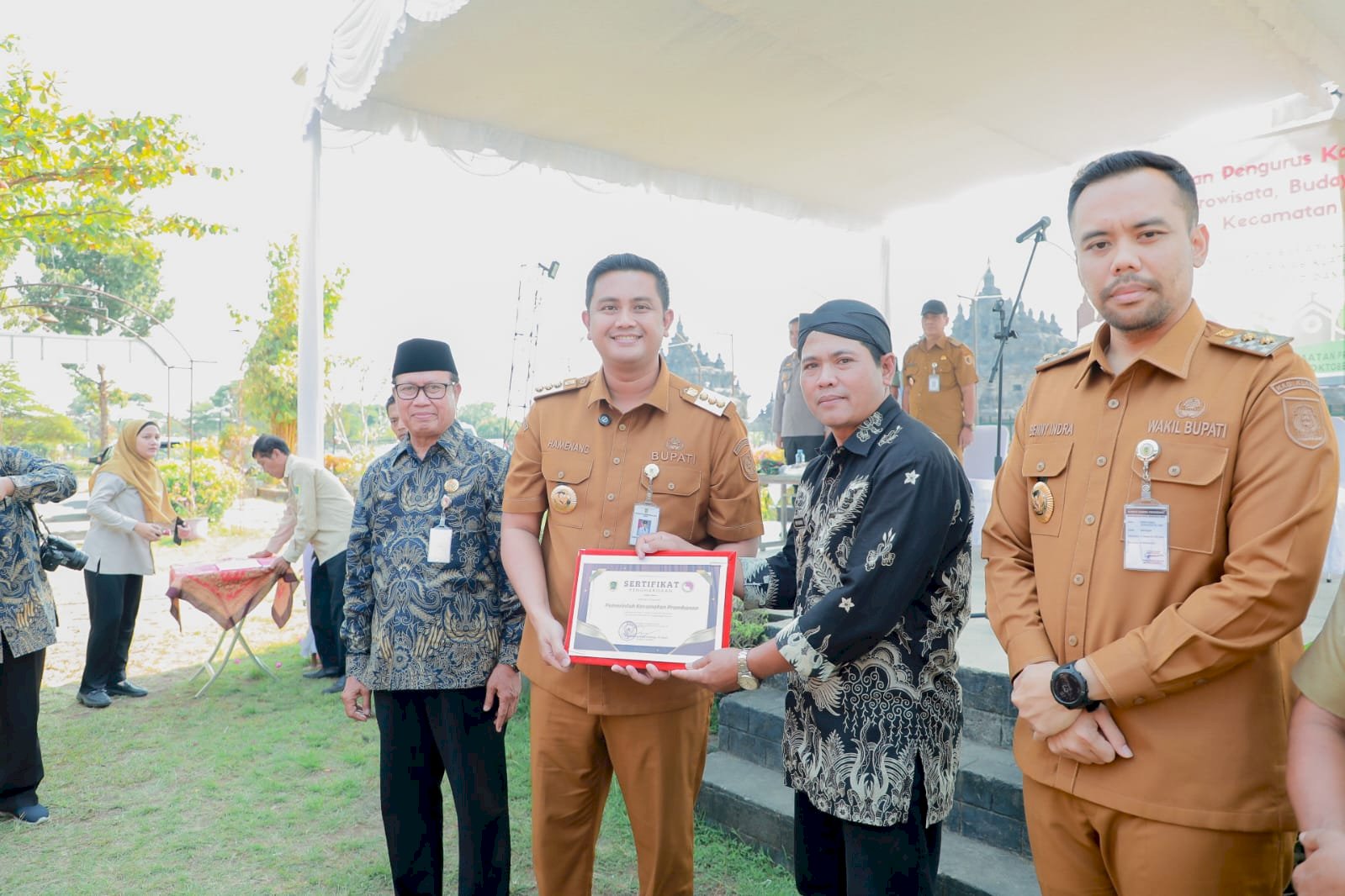 Bupati Klaten Hamenang Wajar Ismoyo menegaskan pentingnya peran tokoh lintas agama dan tokoh masyarakat dalam menjaga keharmonisan kehidupan bermasyarakat. Hal tersebut disampaikannya saat menghadiri pengukuhan Kawasan Sadar Kerukunan Berbasis Agro Wisata Budaya dan Lingkungan Hidup di Plataran Candi Kembar Plaosan, Desa Bugisan, Kecamatan Prambanan, Senin (6/10/2025).