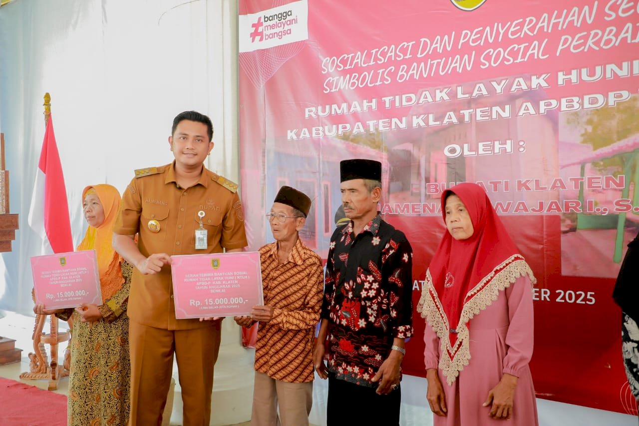 “Pada tahun 2025, Pemkab Klaten memberikan bantuan untuk 353 unit RTLH dengan total anggaran sekitar Rp5 miliar. Selain itu, terdapat dukungan dari Pemerintah Provinsi sebanyak 485 unit, program BSPS 255 unit, dan Baznas 100 unit, sehingga total keseluruhan mencapai 1.193 unit RTLH,” jelas Shodiq.